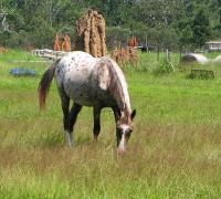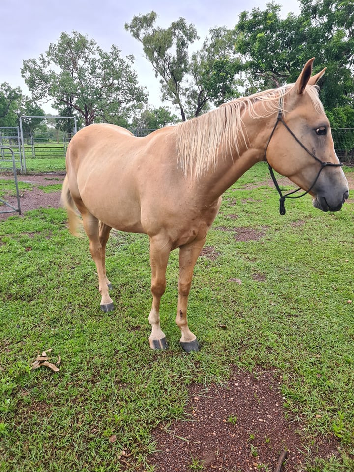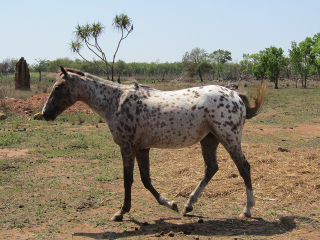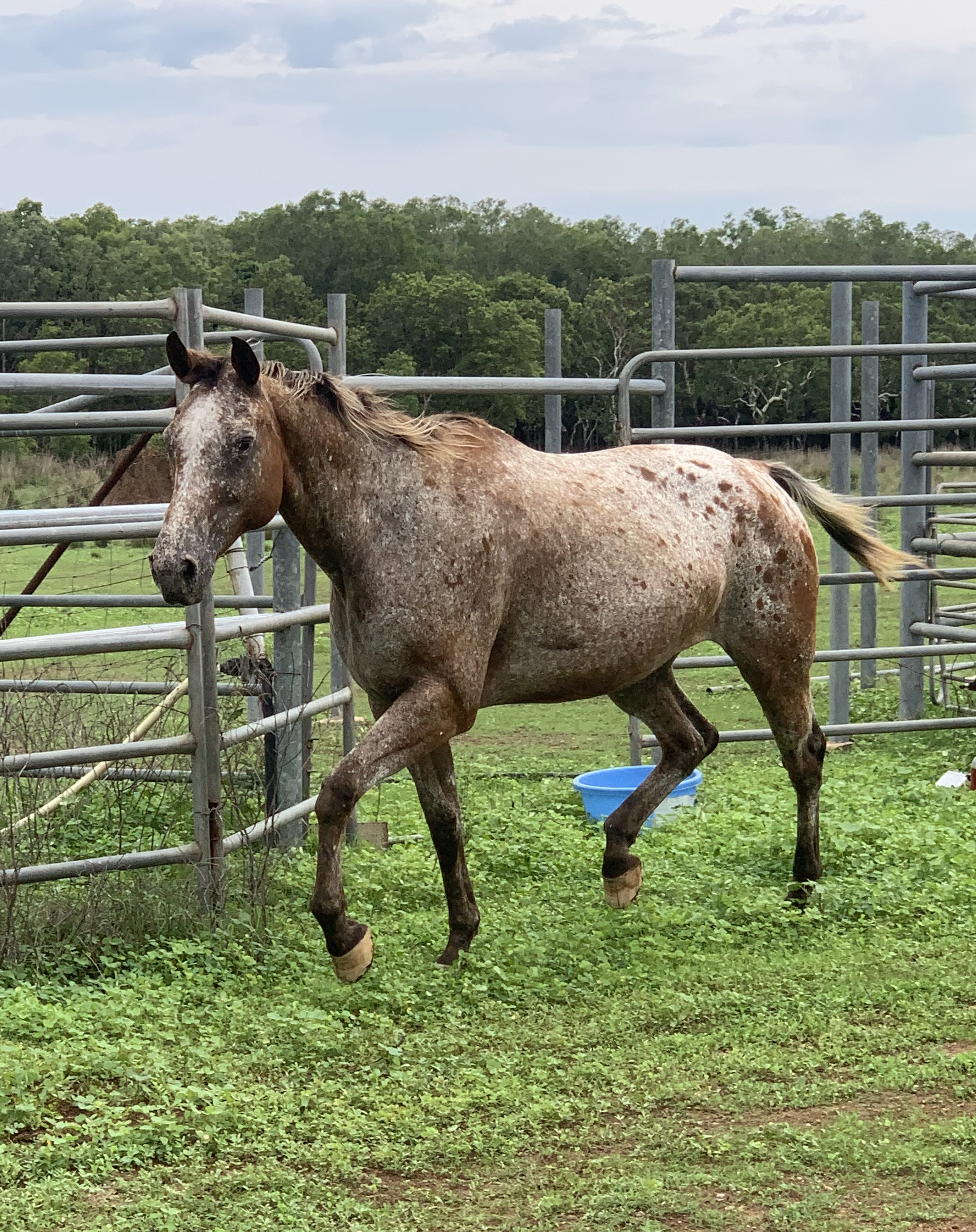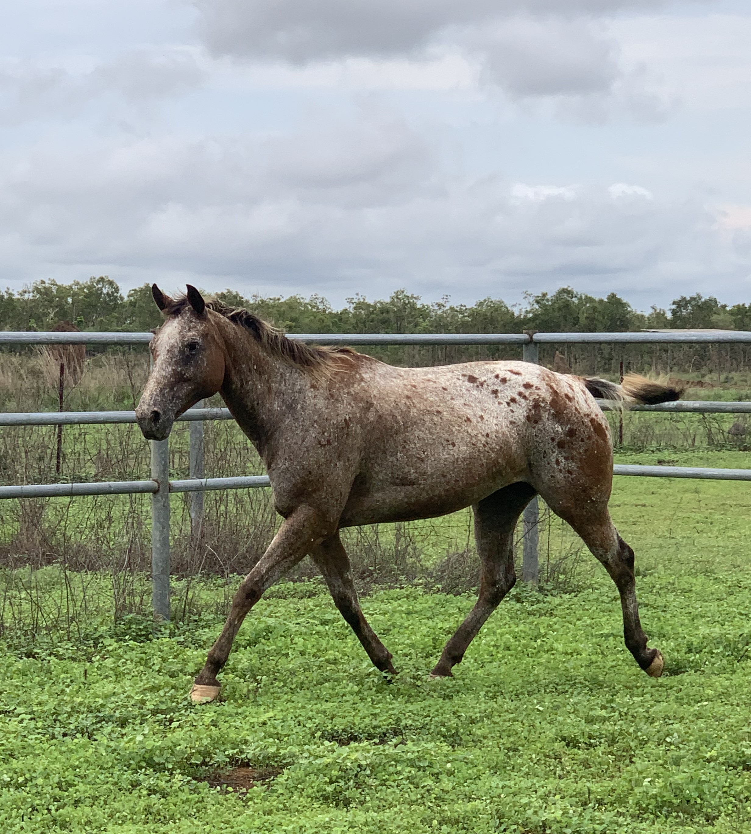 Reg Sportaloosa Mare. (Loris Flashpoint Af Lyn IMP) Dam goes back to Grand Cru. 7yrs, 14.2hh. Broken in and in work. No vices easy to load, worm. spray, wash, handle. Going well under saddle but suits capable rider to develop her and enjoy her. No nasty or dirt just green. Seasoned traveler, hard ties. Not fussed by much, done horsemanship. Paddocks anywhere and with anyone. Easy keeper and handles the wet season well. Videos available