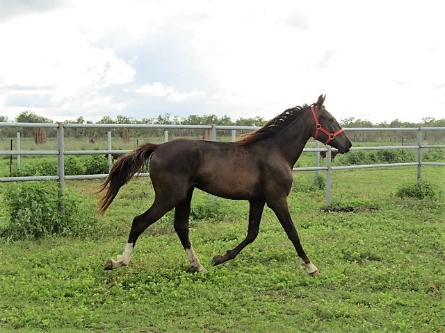 Gorgeous tall black gelding. 2 hind socks and a star. . Born Jan 2019 Dam: Eclipse 16hh Sire: Sartors Supermodel (IMP) 16.3hh This kid can move, lovely paces from the start, Both parents good jumpers and excellent temperaments. Also carrying amazing dressage lines with his sires lines going back to Sir Donnerhall. His dam has the most amazing nature, being used as part of my rehab when I broke my back and responsible for getting me back in the saddle again. He has been stabled and is fine alone or with company. Paddocked with cattle, buffalo, horses, minis etc. Hes seen all the usual farm stuff (choppers, quads, tractors etc) He is sensitive and curious, no vices or nasty but would not suit a novice at this stage. Ready to back, (trainer fell through so he was turned out) Been mouthed, driven in reins, tacked up, flexion, groundwork all established. Needs a job asap. He is registered Sportaloosa. Working through obstacles, tarps, balls with ease. He is a true blank canvas and will likely keep growing. Loads on the truck and float but is still learning to self load, at this stage he still needs to be led on.