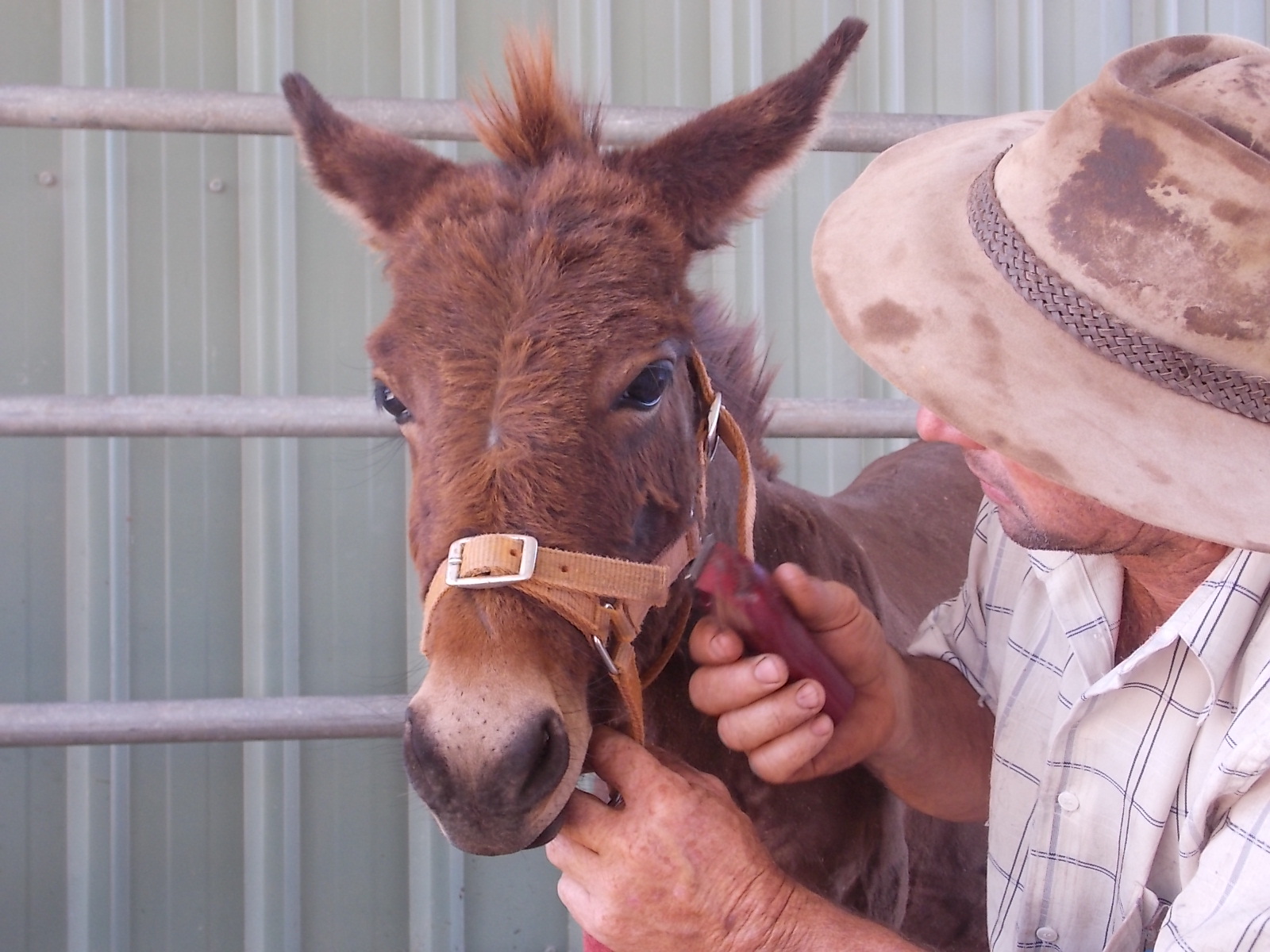 Starbuck is a buckskin micro john mule. He is extremely petite and shouldn't mature over 30". We believe he is the smallest mule in Australia. He is microchipped and is dual registered with both DABSA and ADMS (USA). DOB: 31/11/2018 He has a inquisitive nature and is generally a calm little fellow. He would make an excellent pet. He has been wormed, trimmed, travelled, shown and is good with crowds and noise. Been exposed to fireworks displays and camping away from home. He runs with goats, horses, cattle and buffalo and is good with most fencing. He also leads well and tethers. He can be shy at first but quickly settles into routine.