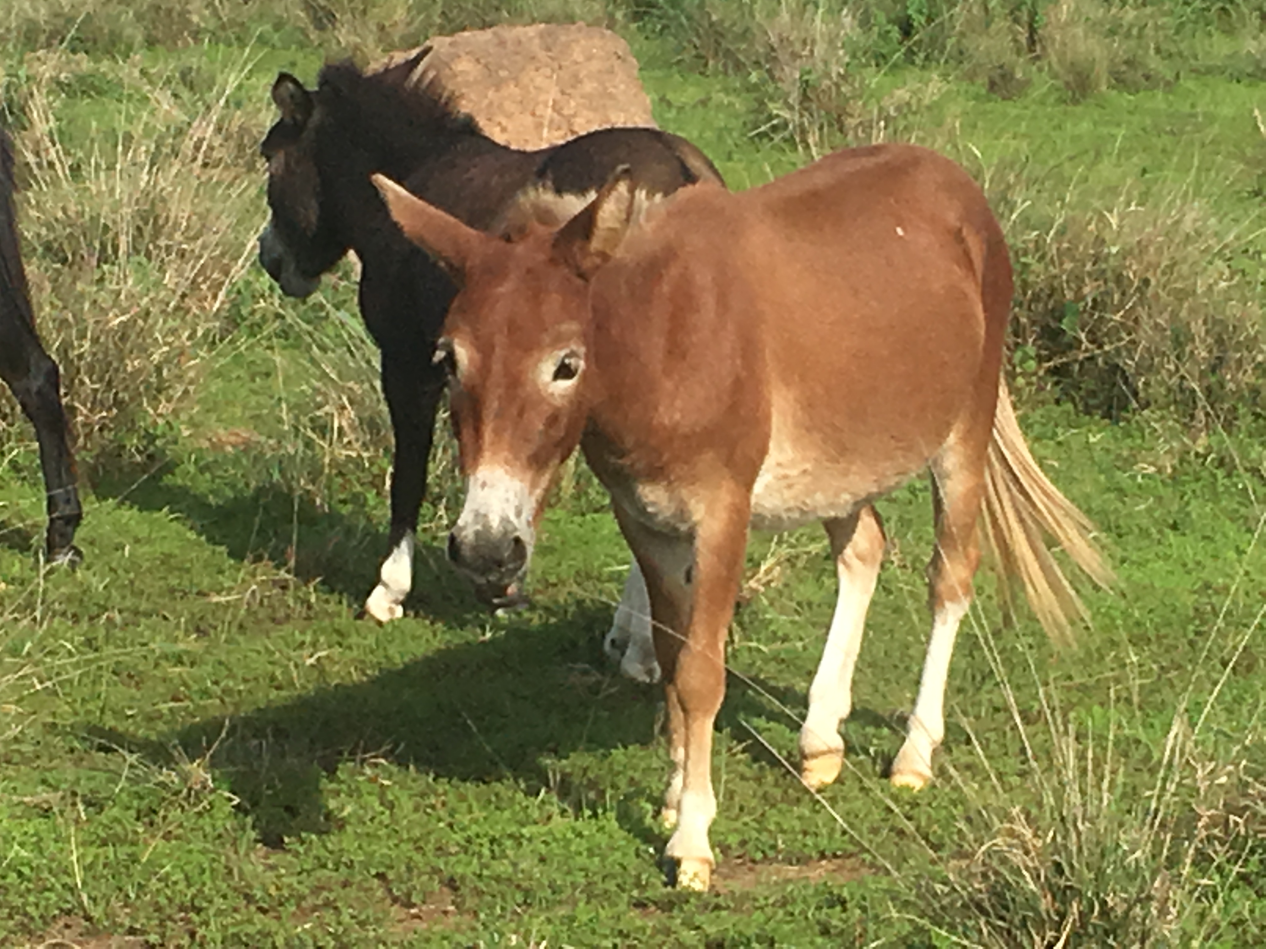 Mules do not bray!!! They are nice and quiet and will “squeak”, “honk” and have a very cute whinny.